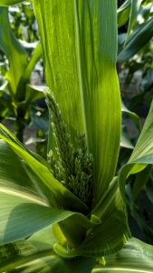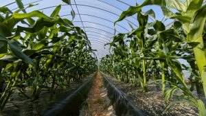 ハウスの中で冬の寒さを乗り越えたトウモロコシが順調に生育しています。